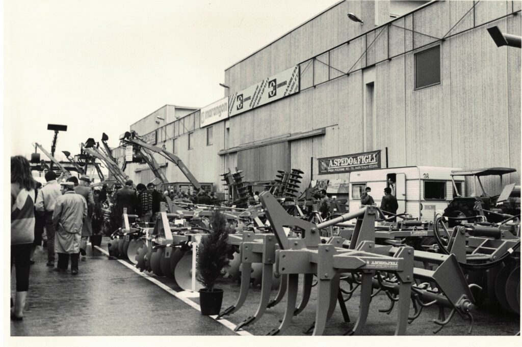 Dopo aver fondato a Villa Bartolomea – dove Luigi rimase a vivere e a condurre una propria attività, definitivamente distinta da quella di Castagnaro – e a Castelbaldo nuove aziende per procacciarsi ulteriore clientela (1948), durante gli anni Cinquanta e Sessanta, l’azienda passò dalle sole riparazioni al recupero e rivendita dei trattori utilizzati, soprattutto della “Ferguson”, dedicando quindi l’attività anche al commercio. Nel 1952 la famiglia acquistò lo stabile in via Polesine a Castagnaro dove, alla costruzione del primo edificio nel 1954 (dove erano collocati l’officina e gli uffici al piano nobile) seguirono l’attivazione di un distributore di benzina e metano nel 1954/56, le costruzioni del primo capannone produttivo destinato a macchine agricole come erpici, frangizolle e trapiantatrici (1957-1958), il secondo capannone (1962-1963), oggi adibito a magazzino prodotti finiti, e infine quelli collocati più a sud, realizzati negli anni Settanta. Ma nonostante il florido periodo, la ditta si trovò dinnanzi alla necessità di includere la nuova generazione. Ciò portò a dividere l’azienda nel 1968. Antonio, volendo includere i propri figli, iniziò un nuovo percorso a Badia Polesine, scelta vissuta, in un certo senso, in modo “pacifico”. Si decise infatti di dividere la produzione di macchine per tipologia: “F.lli Spedo” di Castagnaro continuò ad occuparsi di macchine agricole dedicate alla semina, alla rincalzatura ed alla raccolta delle patate, mentre nella ditta di Badia Polesine “A. Spedo e figli” venne trasferita la produzione delle macchine frangizolle e degli erpici a punte, cui seguì il brevetto dell’interfilare Tridisco. Questa “pacifica divisione” fruttò alle due ditte nel corso del tempo. Ad esempio, la partecipazione alle fiere fu sempre svolta assieme. Oltre a quelle sopra citate, il ramo di Castagnaro e quello di Badia Polesine cominciò a partecipare all’EIMA (Esposizione Internazionale di Macchine per l’Agricoltura e il Giardinaggio) di Bologna, un importante appuntamento per gli operatori del settore. A ciò si aggiunge ultimamente – grazie all’importante contributo delle ultime generazioni – la partecipazione a fiere internazionali, come la SIMA (Salon International de la Machine Agricole) di Parigi, a cui vi partecipa la ditta di Badia Polesine, e l’Agrotecnica di Hannover, che invece è un appuntamento fisso per l’azienda di Castagnaro.